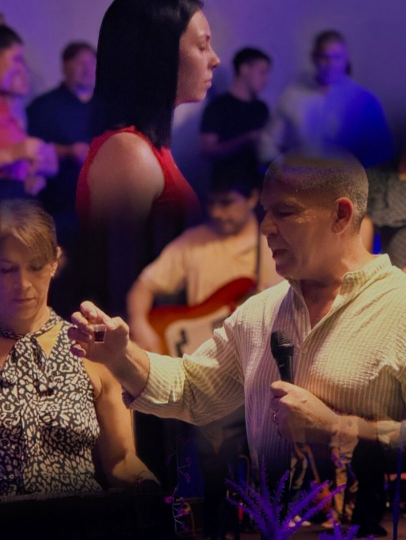 Culto con luz azul en el Ministerio Nuevo Rumbo